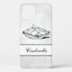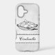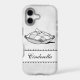 A custom iPhone case with script letters and Cinderella's glass slipper on a pillow in black and white on a grungy grey background. Customise It to change fonts or sizing, add a photo, change device type case, even save your design for later.