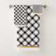 CUSTOM BLACK WHITE GOLD CHECK BATHROOM TOWEL SET