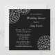This custom black and white wedding shower invitation is the perfect way to invite your friends and family to your celebration. This custom bridal shower invitation features white text on a black background and white peony flowers. You can use the included wedding shower invitation example or customise the text for any other event, such as a graduation or baby shower. You can easily change the font, text colour and wording from the product order page.