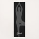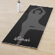 Custom black yoga mat with tree pose silhouette. Elegant design for yoga lessons, class trainer, coach or gym instructor. Fun personal fitness equipment gift for him or her. Add your own name and monogrammed initials. Sports material for yoga, stretching, pilates, floor workout and more. Stylish script typography template. Change design into any favourite colour.