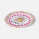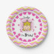 Blonde Princess 3rd Birthday paper plates features a little princess with blonde hair wearing a golden jewelled tiara surrounded by pink flowers, text that reads I'm 3 Today, a border of chevron stripes of hot pink, light pink, gold, and white, and an area you can personalise with her name! The third princess birthday party will be off to a great start with these colourful princess paper plates. Look for the matching napkins, T-shirts, buttons, bags, and more!