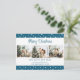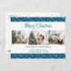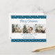 Custom blue photo Christmas postcards featuring a starry blue background with 3 photos in the centre and a beautiful hand-lettered script title. Easily personalise this blue Merry Christmas postcard with your images, message, a family name and the year. You can also personalise the font and change the colour of the text and the background as well.