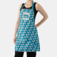 Custom Blue 70s Retro Leaf Pattern Monogram Apron
