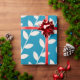 Custom Blue 70s Retro Leaf Pattern Wrapping Paper