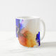Invigorating indigo blue and amethyst teamed with orange and gold. Customise this unique abstract art with a name; for yourself or as a gift. Brighten up the day with these beautiful cool summer tones. Custom Blue Alcohol Ink Coffee Mug. Original art by international artist Pauline Benjes.