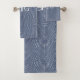 An interesting pattern of blue arches covered with white dots bath towel set. Initials added to personalise the set. Matching bathmat is also available.