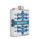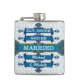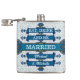 On these beautiful, personalised flasks, all the text is customisable. Make them for a wedding couple, as in the example, or add any other words you'd like. The luxurious, vintage looking - yet original - design features an antique-looking sign in various shades of blue, trimmed in sea shells, a gold-yellow rope and plenty of elegant flourishes. The background is a repeating swirled spiral pattern in light blue and white. The sample text reads, "Eat, Drink and be Married" with room for two names. Easily change text in the "Personalise It" field or click "Customise It" to adjust fonts / sizes.