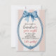 "Celebrate friendship in style with this charming Galentine’s Girls’ Night invitation! Featuring a hand-painted blue bow and scalloped oval frame on a soft cream background with festive beige stripes, this design is elegant, fun, and perfect for a stylish night out with your favorite girls. The classic color palette gives it a playful yet classy look, making it ideal for brunches, cocktail nights, or a glamorous girls’ celebration. The open center provides plenty of space to personalize your party details. Perfect for Galentine’s Day, Valentine’s-themed gatherings, or any girls-only celebration. Easily customize text, dates, and details to make it uniquely yours."