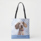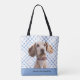 Custom Blue Chequered Your Dog's Photo/Name/Font Tote Bag
