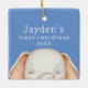 Custom Blue Cute Elephant Baby Boy First Christmas Ceramic Ornament