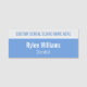 Blue dentist name tag with the dental clinic name, employee name, and professional job title. This design can be personalised with any colour and font. Choose between a magnetic or clothes pin backing.