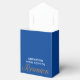 This modern custom high school reunion party favour box features the high school alumni name in white script on a blue background for a 10th, 20th, or 30th celebration.