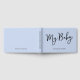 Custom Blue Keepsake Script Baby Book for Mother features a minimalist and elegant design, perfect for preserving a mother’s love and memories. The black text on a soft pastel blue background adds a timeless touch, with “My Baby” in script and the child’s name with Est. 20XX in a modern sans-serif font. The spine reads “A book of moments & memories”, while the back cover carries the heartfelt message “With all my love, Mum.”