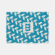 Custom Blue Retro Leaf Pattern Monogram Fleece Blanket