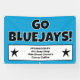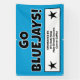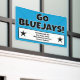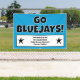Here is a bright sign to let people know about your team featuring the colours blue, white and black! Personalised with your own sponsor information or any other words, right on this page! Go Jays!