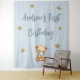 Make your celebration unforgettable with this adorable Blue Teddy Bear Birthday Backdrop, fully customisable with your child’s name and age! Featuring a sweet teddy bear illustration, soft blue background, golden stars and crowns, this backdrop is perfect for first birthdays, baby showers, cake smash photos, or toddler parties.