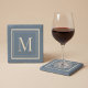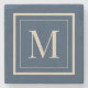 Custom Blue & Vanilla Framed Monogram Stone Coaster