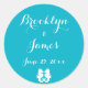 Custom blue (scuba blue) and white seahorse wedding stickers with customisable text