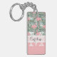 Custom Blush Pink Flamingoes Palm Leafs Pattern Key Ring