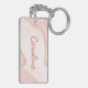 Custom Blush Pink Rose Gold Marbled Art Pattern Key Ring