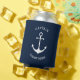 Custom Boat name Captain nautical anchor dark navy Can Cooler
