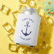 Custom Boat name, First Mate, nautical anchor navy blue white Can Cooler. Navy blue letters white can cooler.