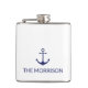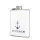 Custom Boat name nautical anchor navy blue white minimalist Flask