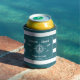 Welcome aboard! Nautical boating can cooler reading your custom boat name surrounded by a compass with an anchor on modern teal and white stripes with seagulls as well as a second line of text ready to be personalised. Perfect for the lake house vacation or a weekend boat trip!