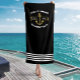 Make a splash this summer with this personalised nautical beach towel! Crafted from super-soft, absorbent microfiber, this large beach towel features a sophisticated black and gold background adorned with a classic anchor design, "Welcome Aboard," your boat's name, and the establishment year.