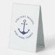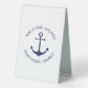 Custom Boat name or Family name, Welcome Aboard, nautical navy blue anchor and text and white Table Tent Sign