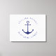 Custom Boat name or Family name, Welcome Aboard, nautical navy blue anchor and text and white wedding sign Canvas Print