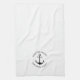 Custom Boat name or Family name, Welcome Aboard, nautical black anchor white background kitchen towel.