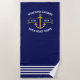 Make a splash this summer with this personalised nautical beach towel! Crafted from super-soft, absorbent microfiber, this large beach towel features a sophisticated navy blue and gold background adorned with a classic anchor design, "Welcome Aboard," your boat's name, and the establishment year.