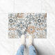 A modern Boho style abstract floral shapes doormat. Earthy browns and greys. Eclectic mixed stylised geometric florals.