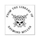 Transform your book collection into a treasure trove of elegance and personality with our beautiful stamp, featuring round typography and a gothic image of a pirate skull inside.