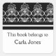 Custom Bookplates-Black White Swirls Pattern Square Sticker