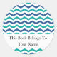Custom Bookplates | Green Blue Chevron Stripes Classic Round Sticker