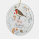 Decorate and celebrate this holiday and your love of birds with this cute ornament featuring a robin and other Christmas elements like twigs, leaves, and dried seeds. You can easily customize the family name and background color by clicking 'Customize It' submenu under the "Personalize" menu.