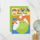This custom bowling birthday party invitation features several bowling balls in bright colours, bowling pins, and a boy holding a bowling ball. Can be customised as a bowling party invitation, a bowling party thank you card and more.