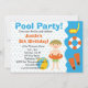 Announce the fun, summer pool party for your little boy with this colourful birthday party invitation. Completely customisable.