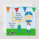 Get ready for game day! These colourful customised football theme birthday invitations are great for boys who love football or are having a football birthday party celebration! Features flags, football field, football, football shoes, and a boy in a blue football helmet and jersey holding a football! Easy to customise with your child's birthday party specifics!