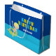 Custom kids swimming pool Happy Birthday gift bag for a blonde child on the swim team during the summer. Features a bright, fun pop of colours and a cool swimming boy in an inner tube. Customise for a special children's gift.