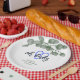 These charming baby shower paper plates have a minimalist design that is gender-neutral. They showcase elegant watercolor botanical leaves in a calming green hue, set against a pristine white backdrop. The stylish black scripted typography spells out "oh baby," providing an additional hint of contemporary flair.