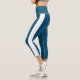 Custom Branded Striped Capri Prussian Blue & White Leggings.