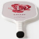 This personalised pickleball paddle features a beautifully detailed rose set against a soft pink background, customised with the bride's name and wedding date for a romantic keepsake design.