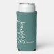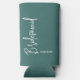 Custom Bridesmaid Dark Teal White Chic Script Name Seltzer Can Cooler