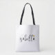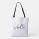 A chic modern white bag with black script name and gold heart that's perfect for a bridesmaid proposal. Your bridesmaids can fill their tote with essentials for Bachelorette Party trips, or for essentials to bring on the morning of the wedding.