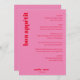 Custom Bright Bold Pink and Red Modern Wedding Menu