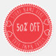 50 Percent Off stickers for store sales promotions. Discount labels for business. Add your own custom percentage value. DIY marketing materials for shops, retail company, outlets, events, special deals, promo mailing, discounters... Red and white half price example. Also fabulous as envelope seals.