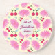 Custom Bright Pink Floral Cherry Pattern Coaster